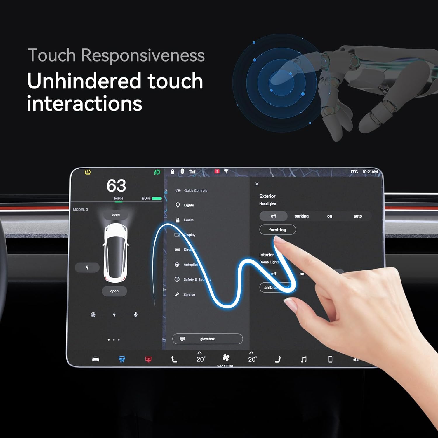 NO EDGE GAPS: Customised model y juniper screen protector based on the size of the tesla original screen to ensure the 1:1 fit with screen